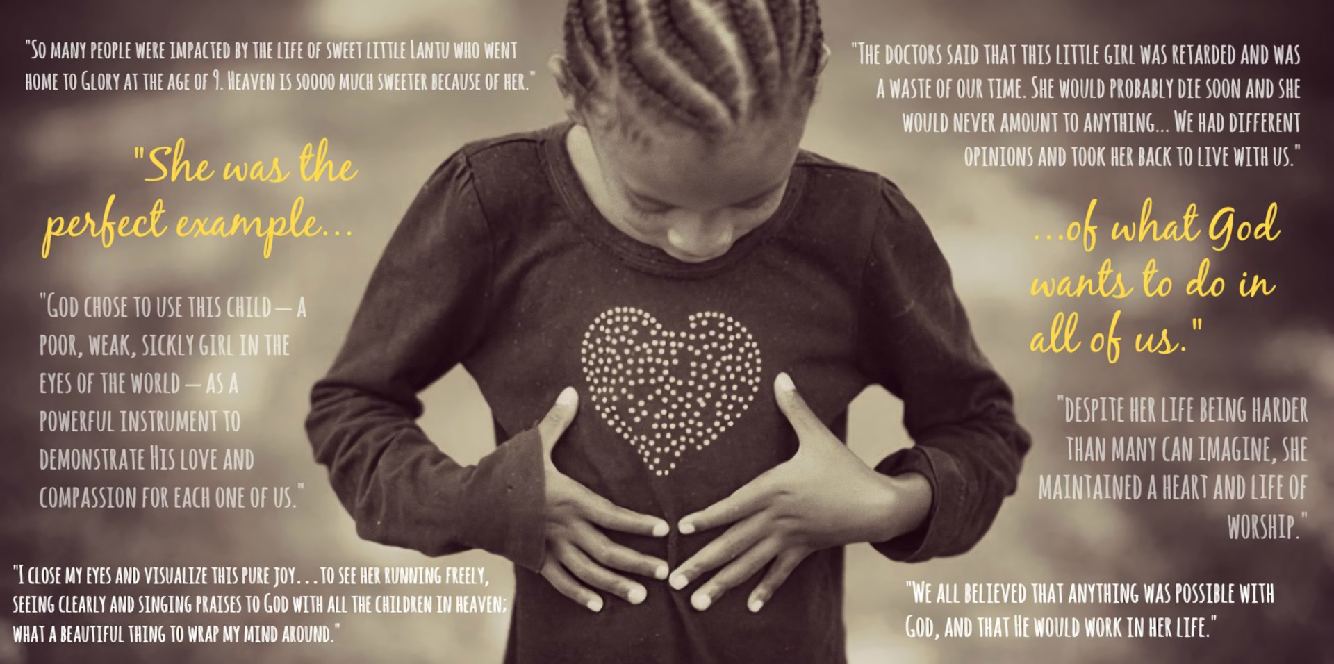 We love you Lantu! We are SO thankful that you are whole and seeing Jesus face-to-face.